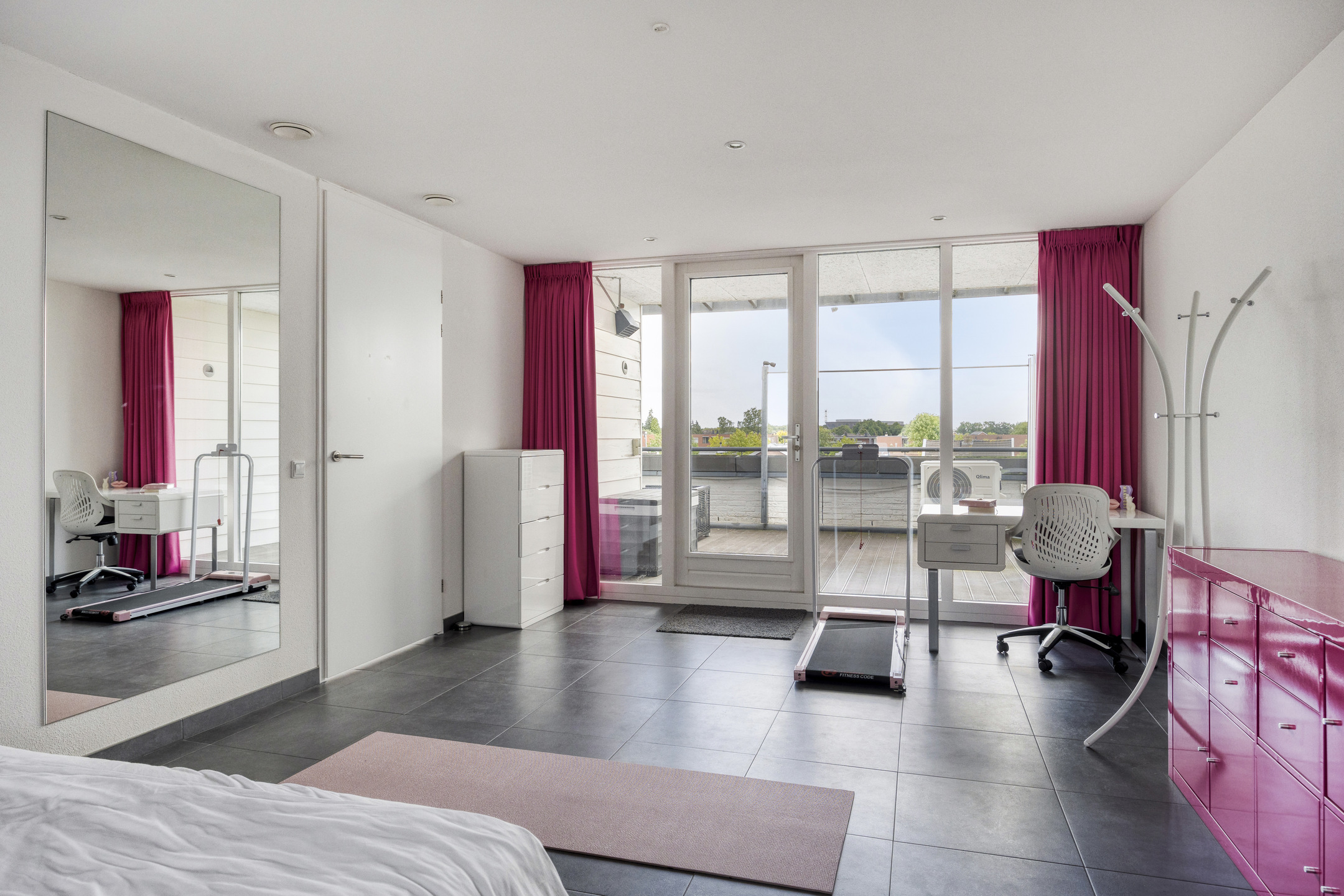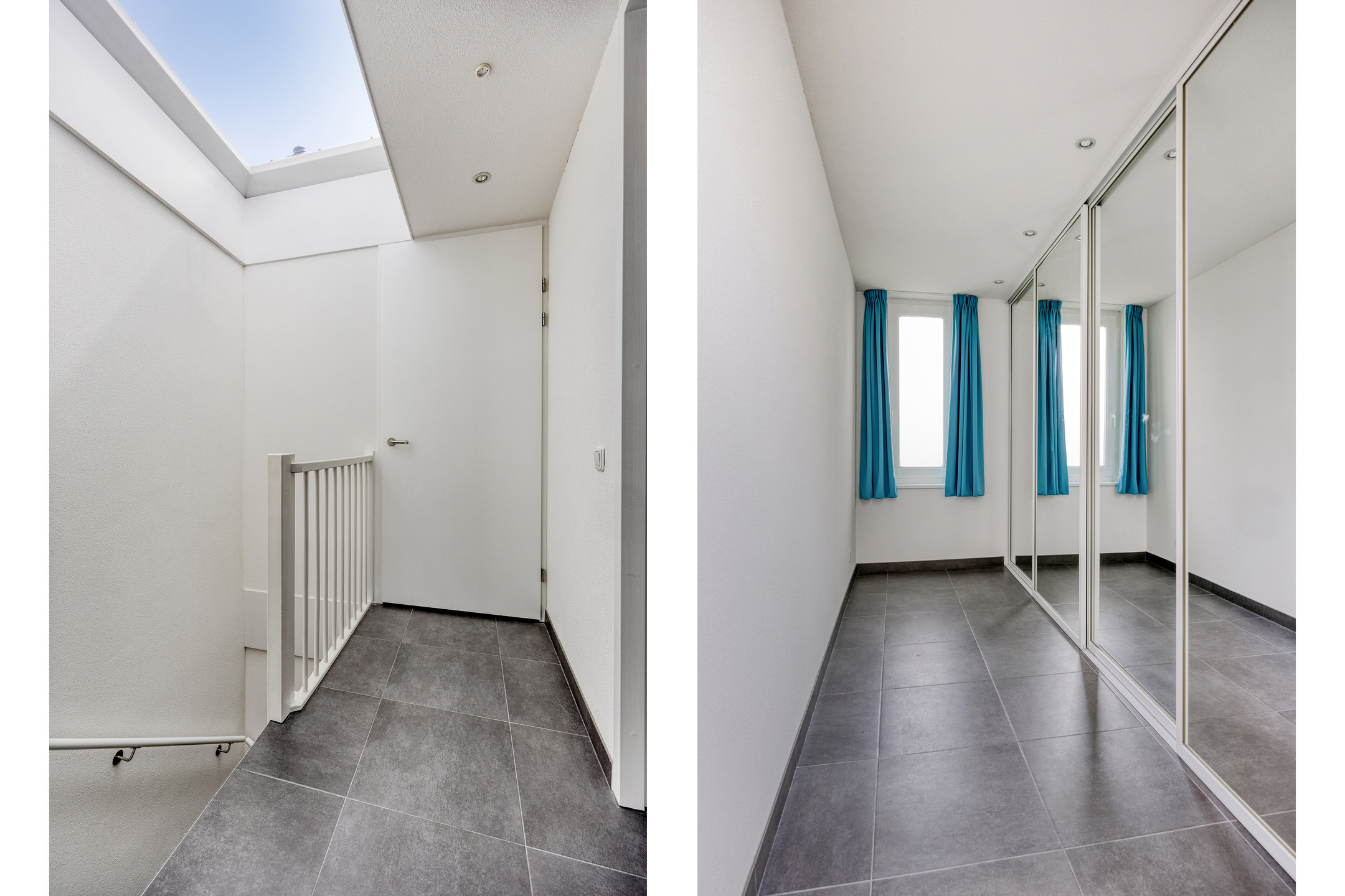 De tweede verdieping herbergt een zeer ruime slaapkamer en een extra kamer die nu dienstdoet als kastenkamer. De overloop is opvallend licht door de mooie lichtstraat. Aansluitend aan de slaapkamer ligt het zonnige dakterras, perfect voor lange zomeravonden of een rustige koffiepauze in de ochtendzon.