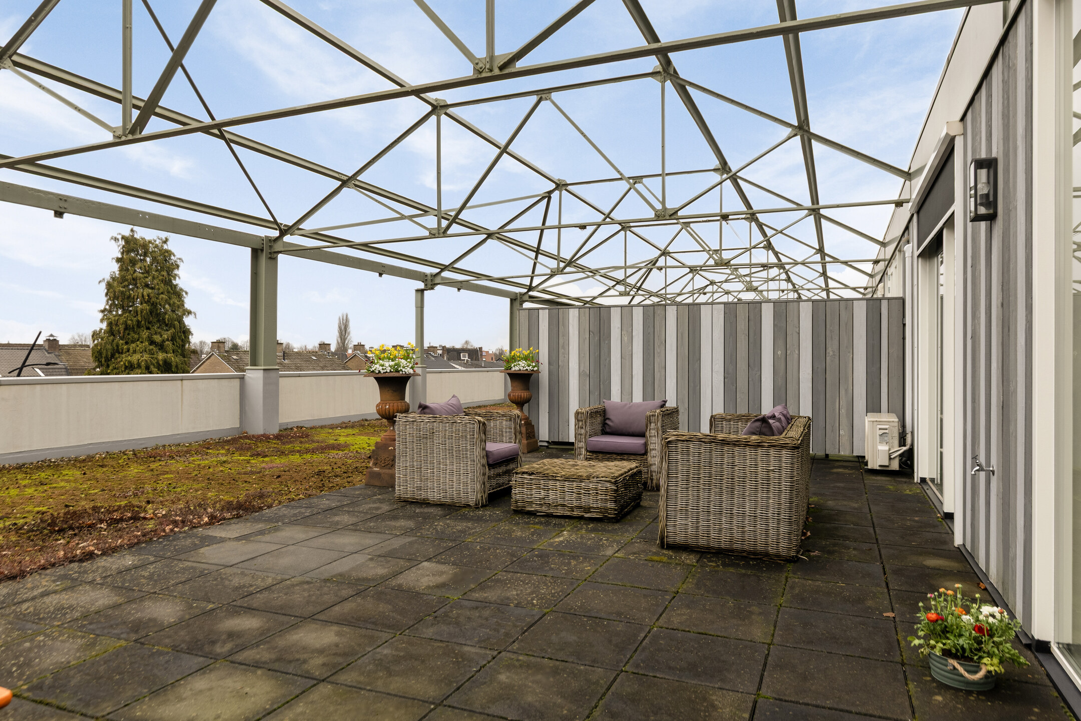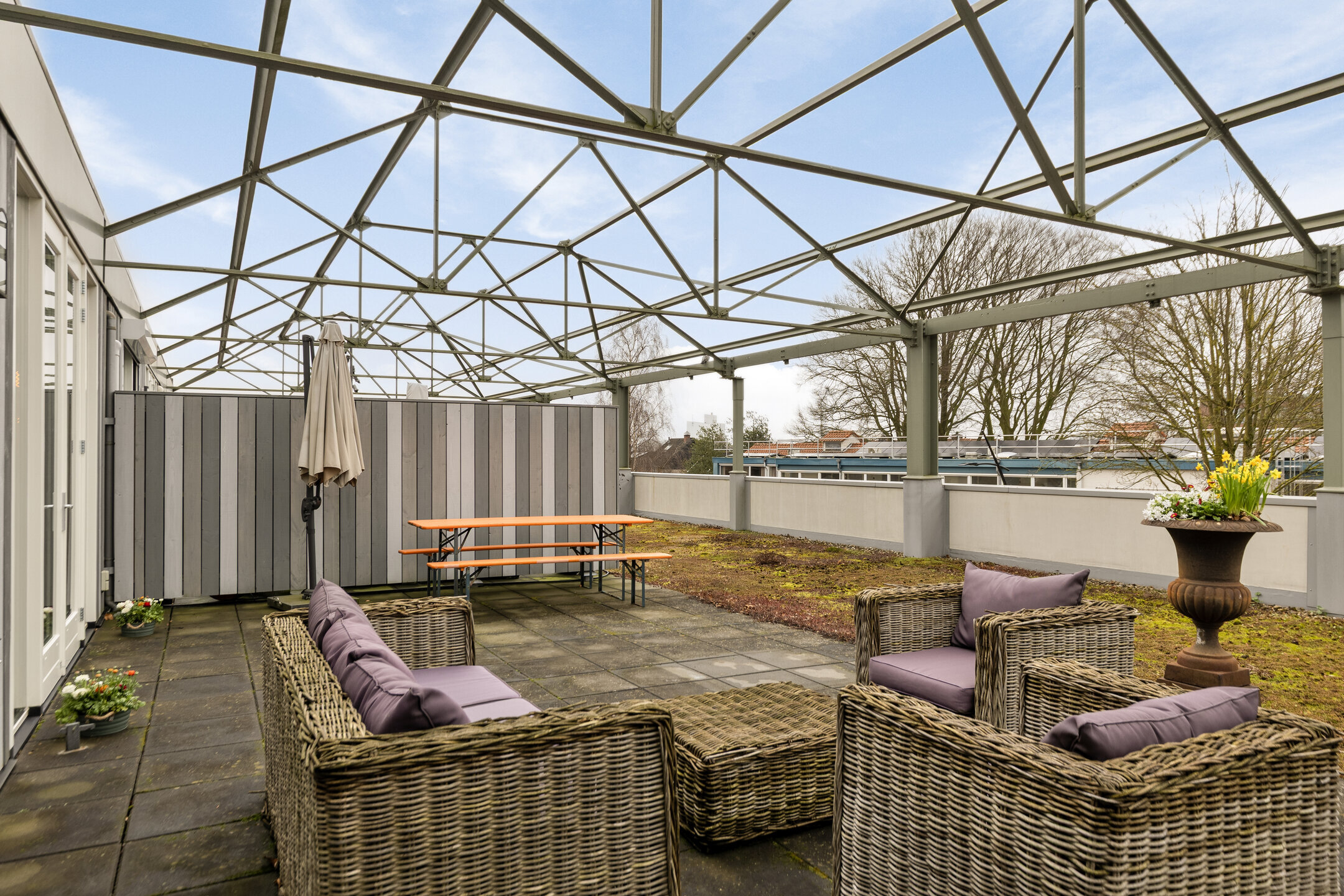 Een absoluut unicum van deze woning is het royale dakterras van bijna 50 m2. Over de volledige breedte van de woning heb je hier een fantastische buitenruimte waar binnen en buiten naadloos in elkaar overlopen.