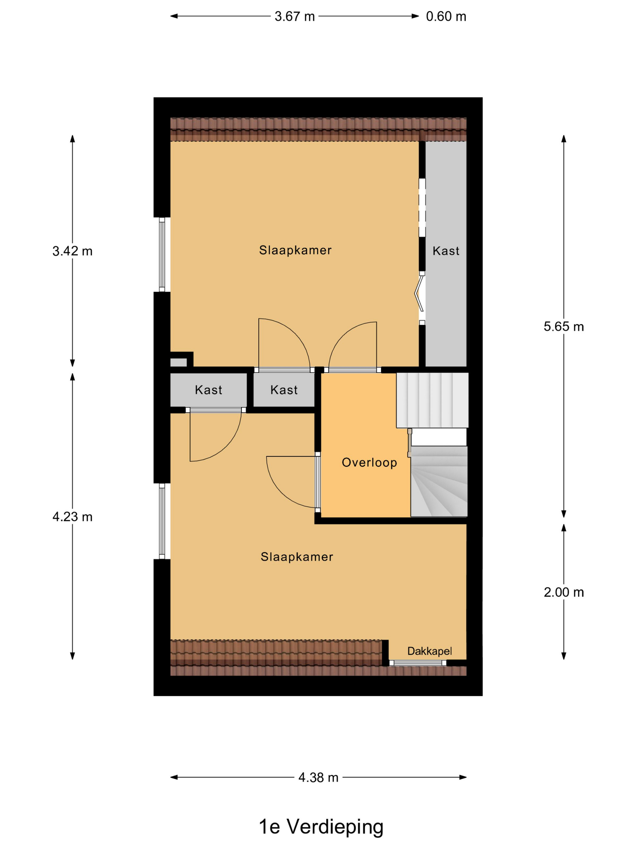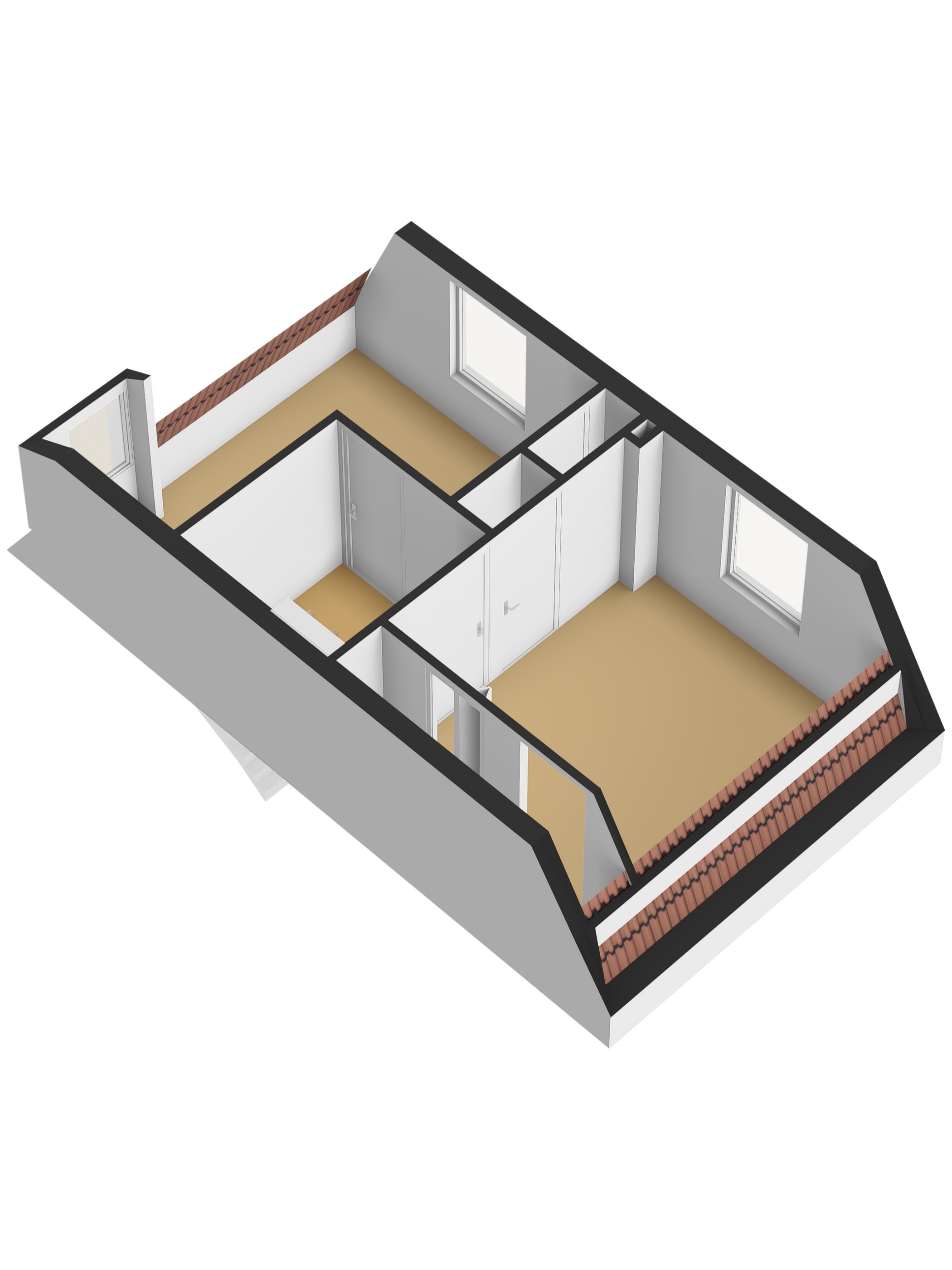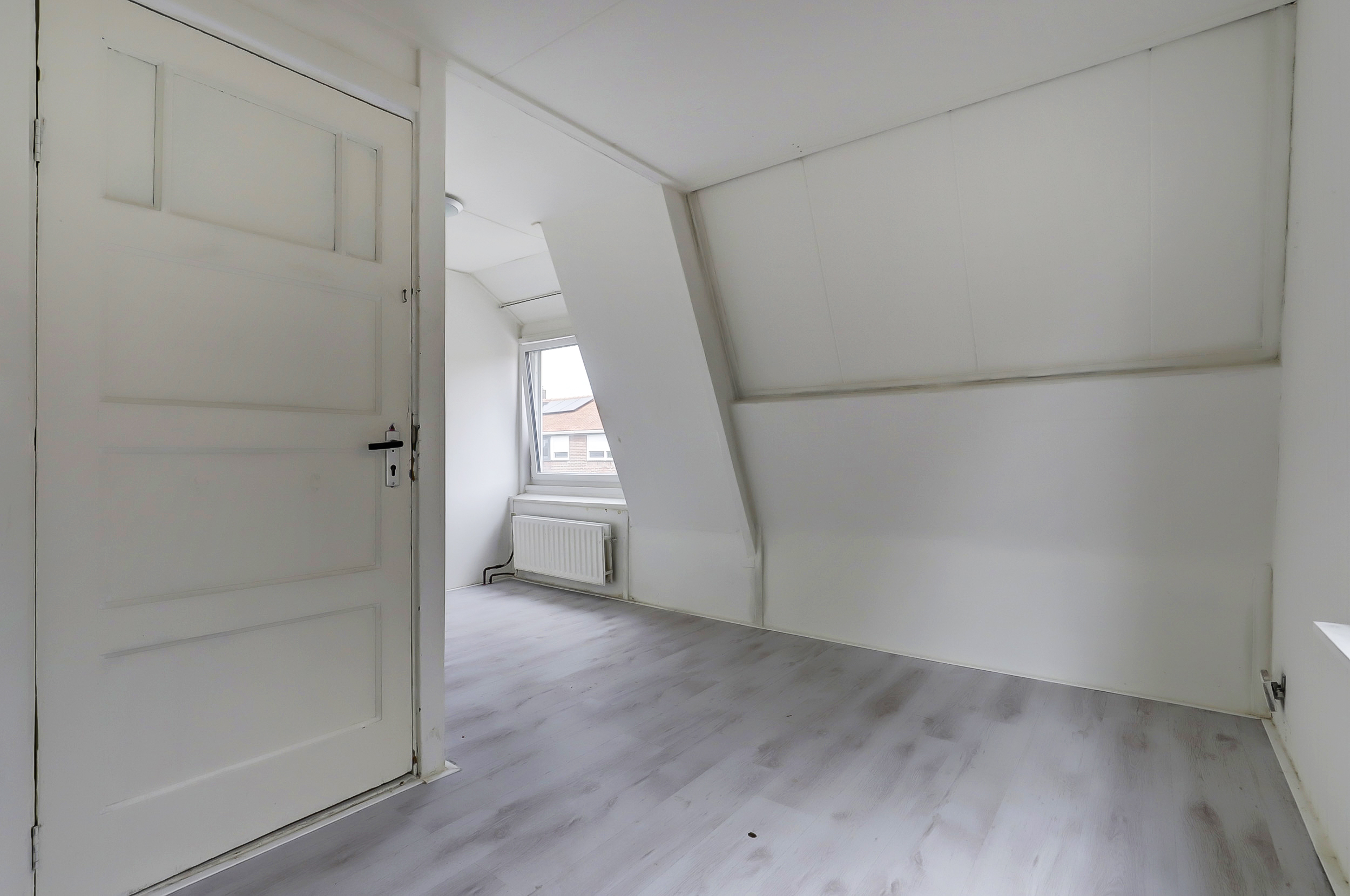 Twee ruime slaapkamers van ca. 14 en 16 m², beide met inbouwkasten. De kamer aan de voorzijde heeft een dakkapel met kunststof kozijn en triple glas. Via de overloop kom je bij de vaste trap naar de zolder.