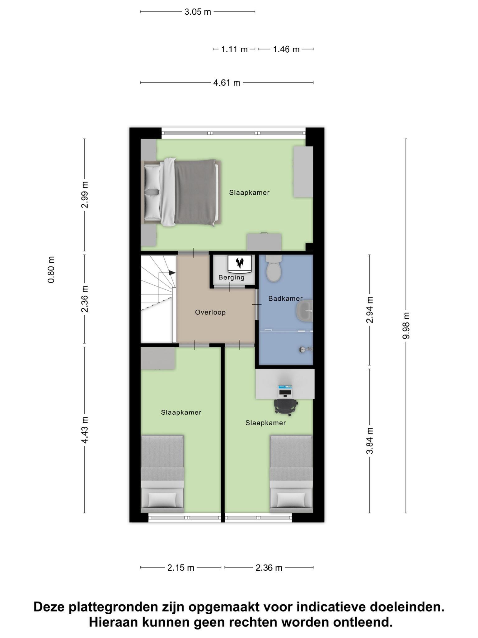 Boven zijn drie volwaardige slaapkamers, allemaal groot genoeg voor een bed, kast én een bureau. De badkamer is praktisch ingedeeld met een douche, toilet en wastafel. Verder vind je hier de stookruimte met een Cv-ketel uit 2018 en een nieuwe mechanische ventilatieunit.