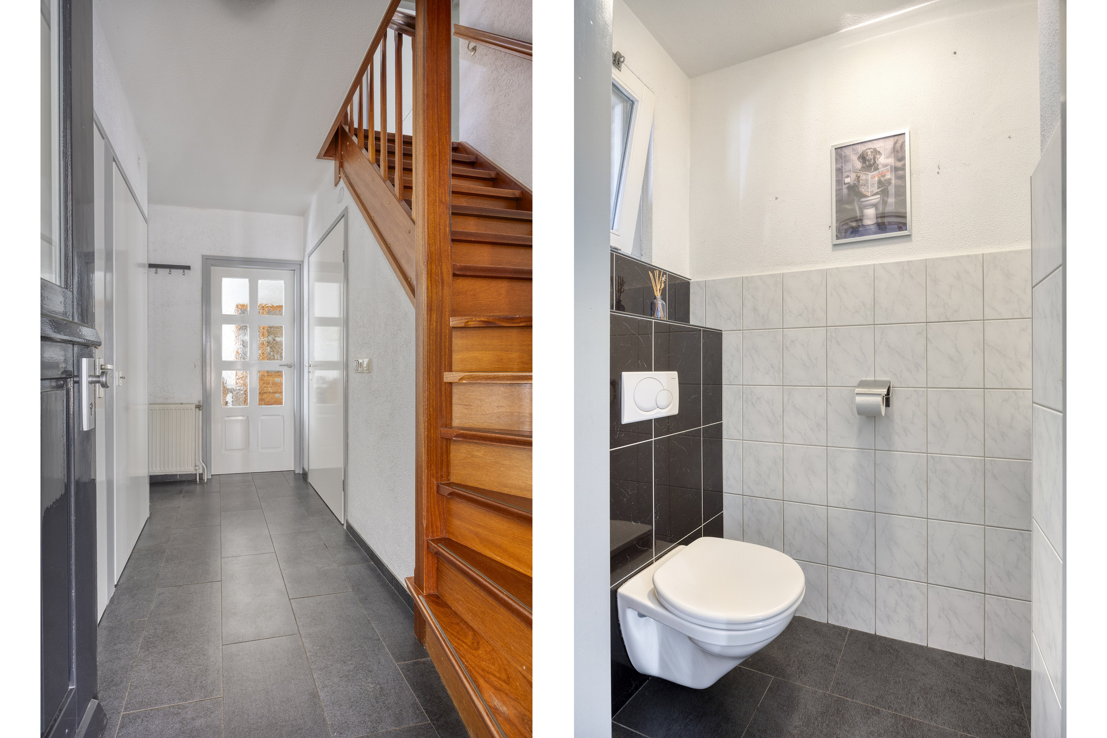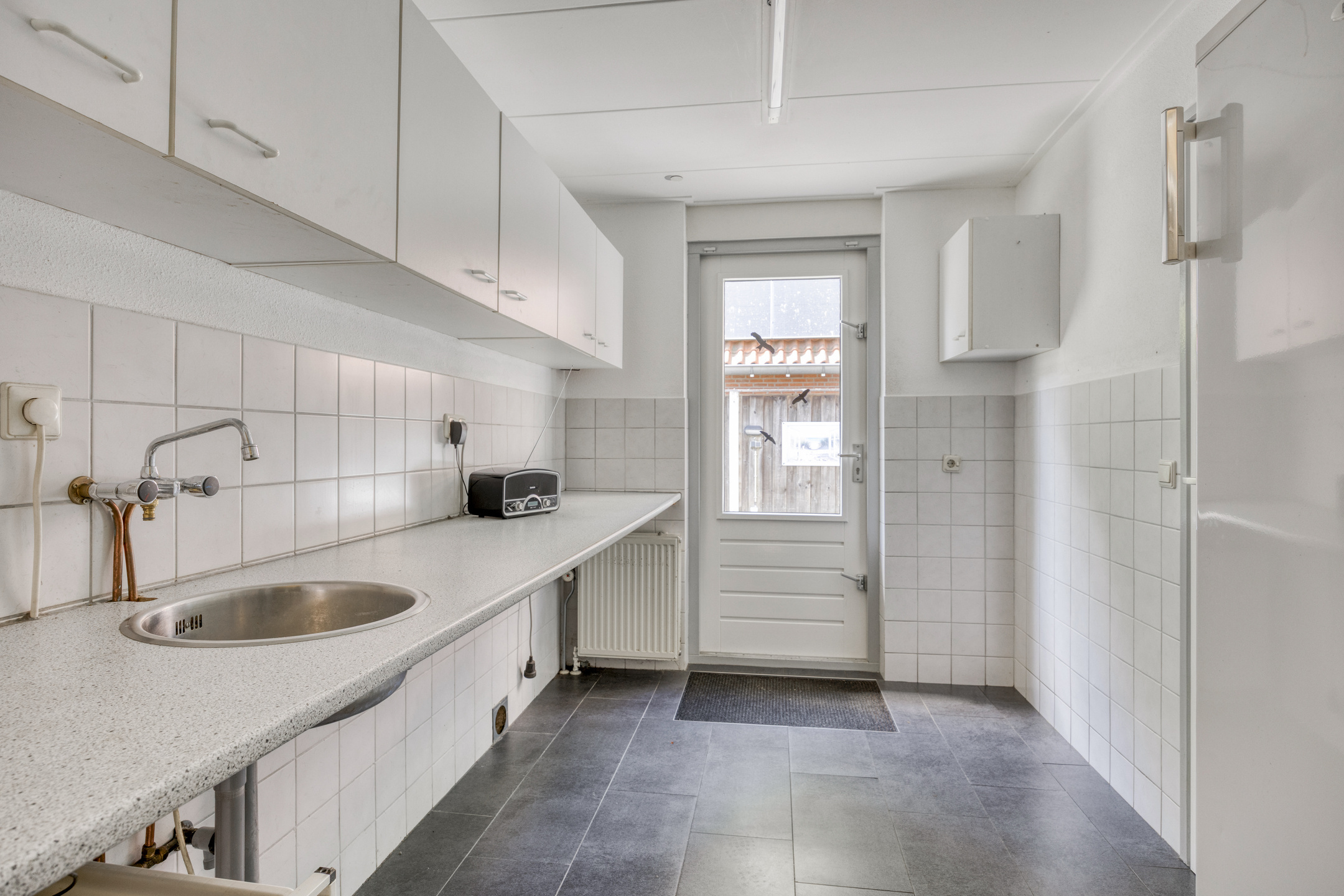 Aansluitend vind je de praktische bijkeuken met ruimte voor vriezer, wasmachine en droger. Vanuit hier loop je zó de garage of tuin in.