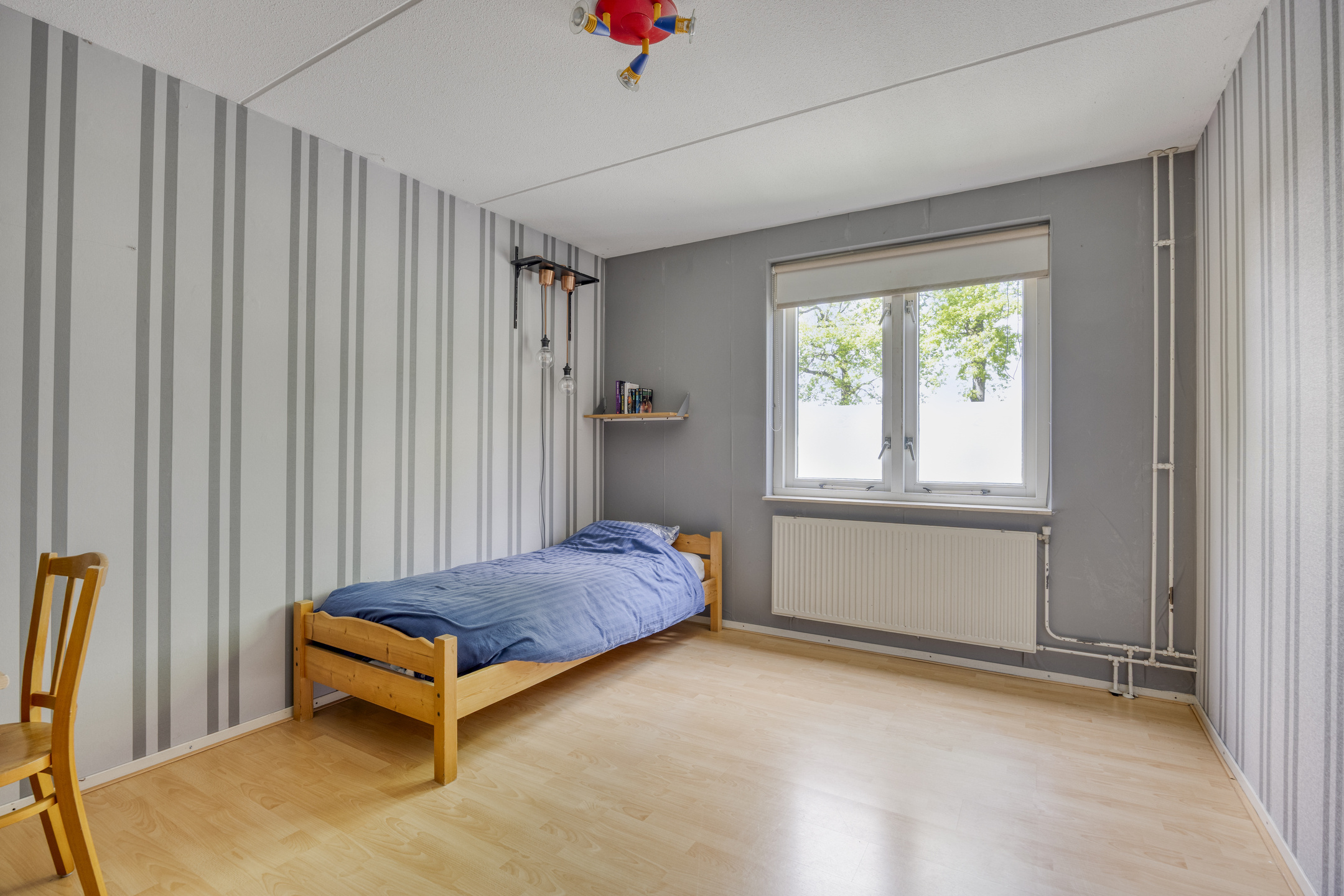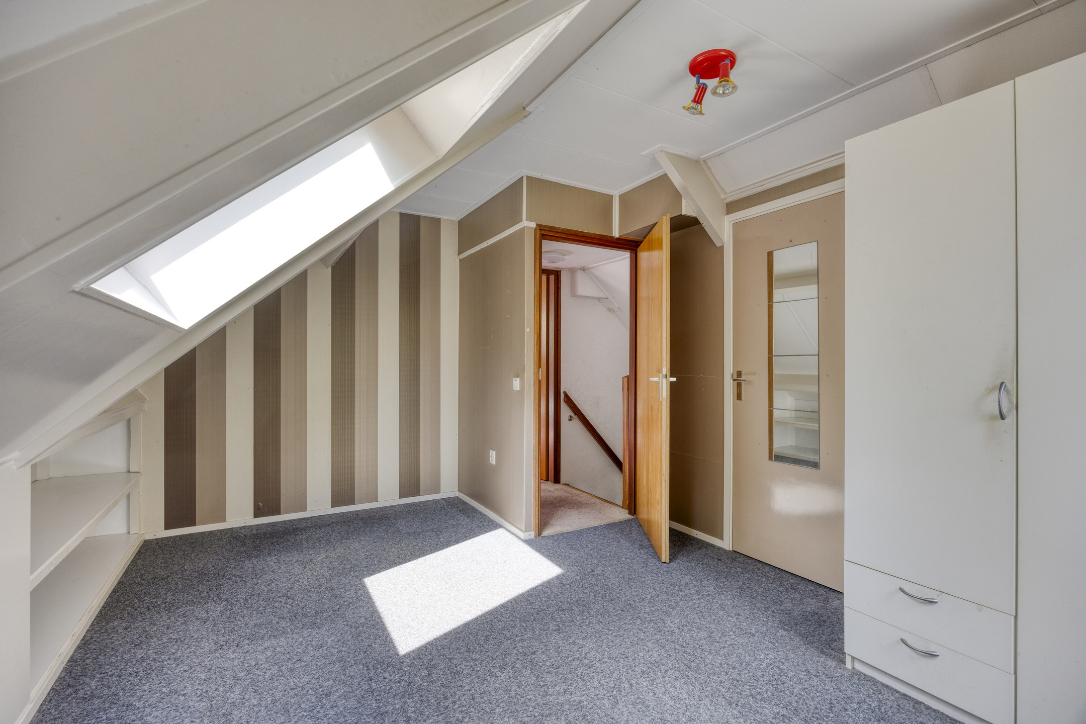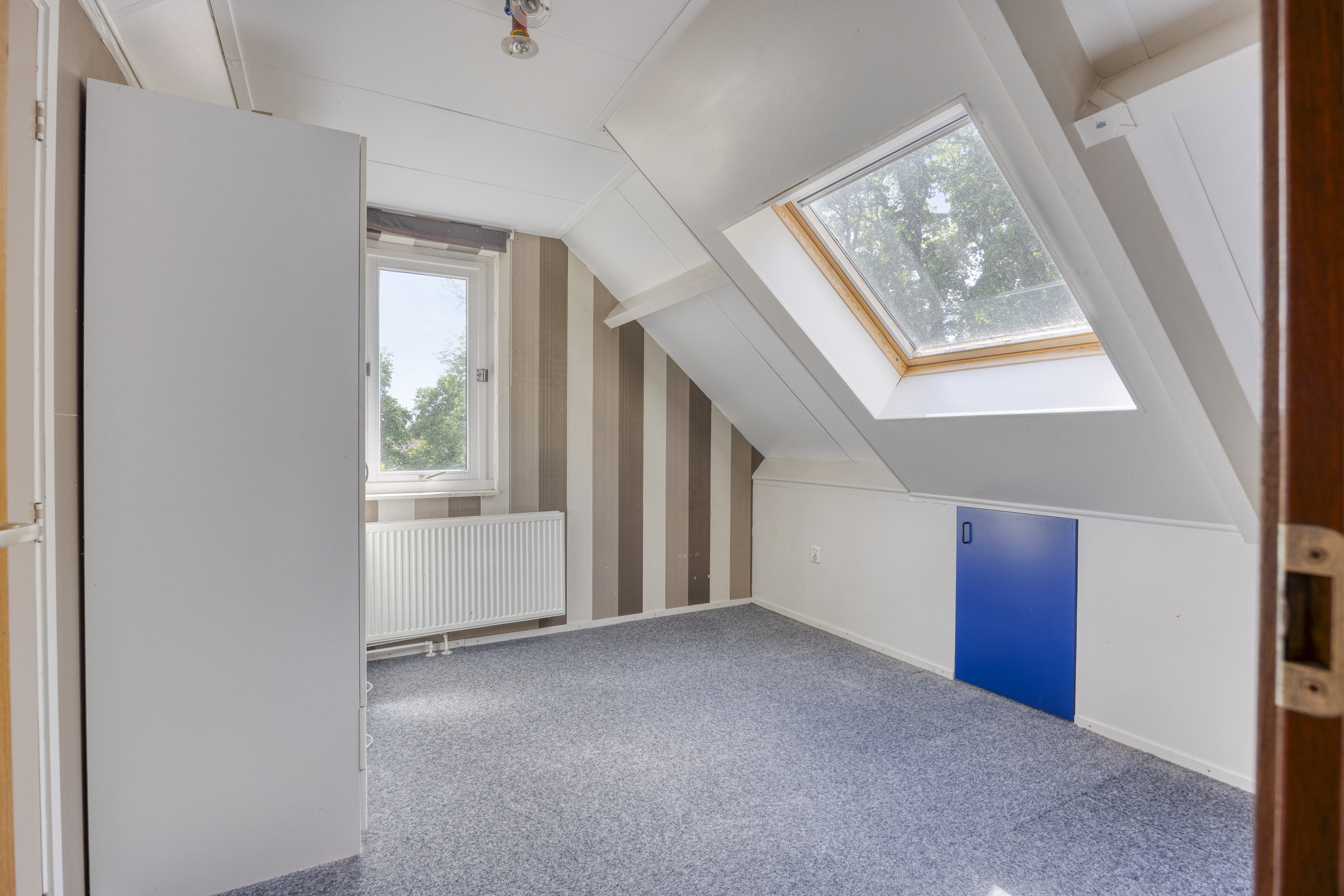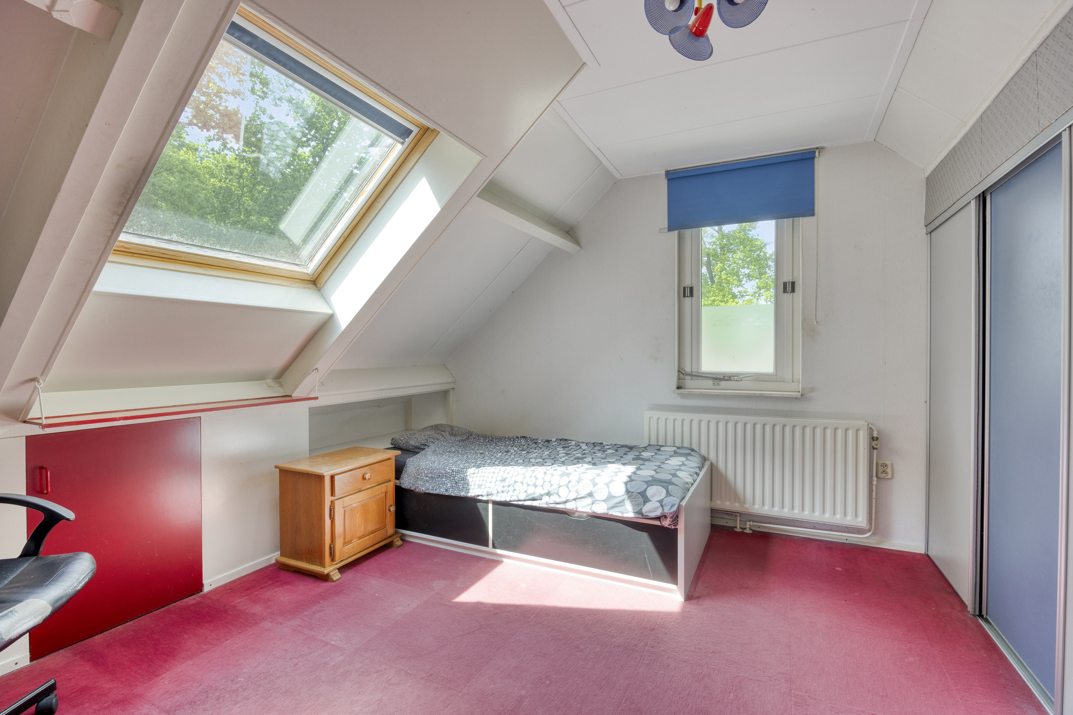 Ook op de tweede verdieping hoef je je over ruimte geen zorgen te maken. Hier zijn nog eens twee royale slaapkamers, allebei voorzien van voldoende bergruimte achter de knieschotten.