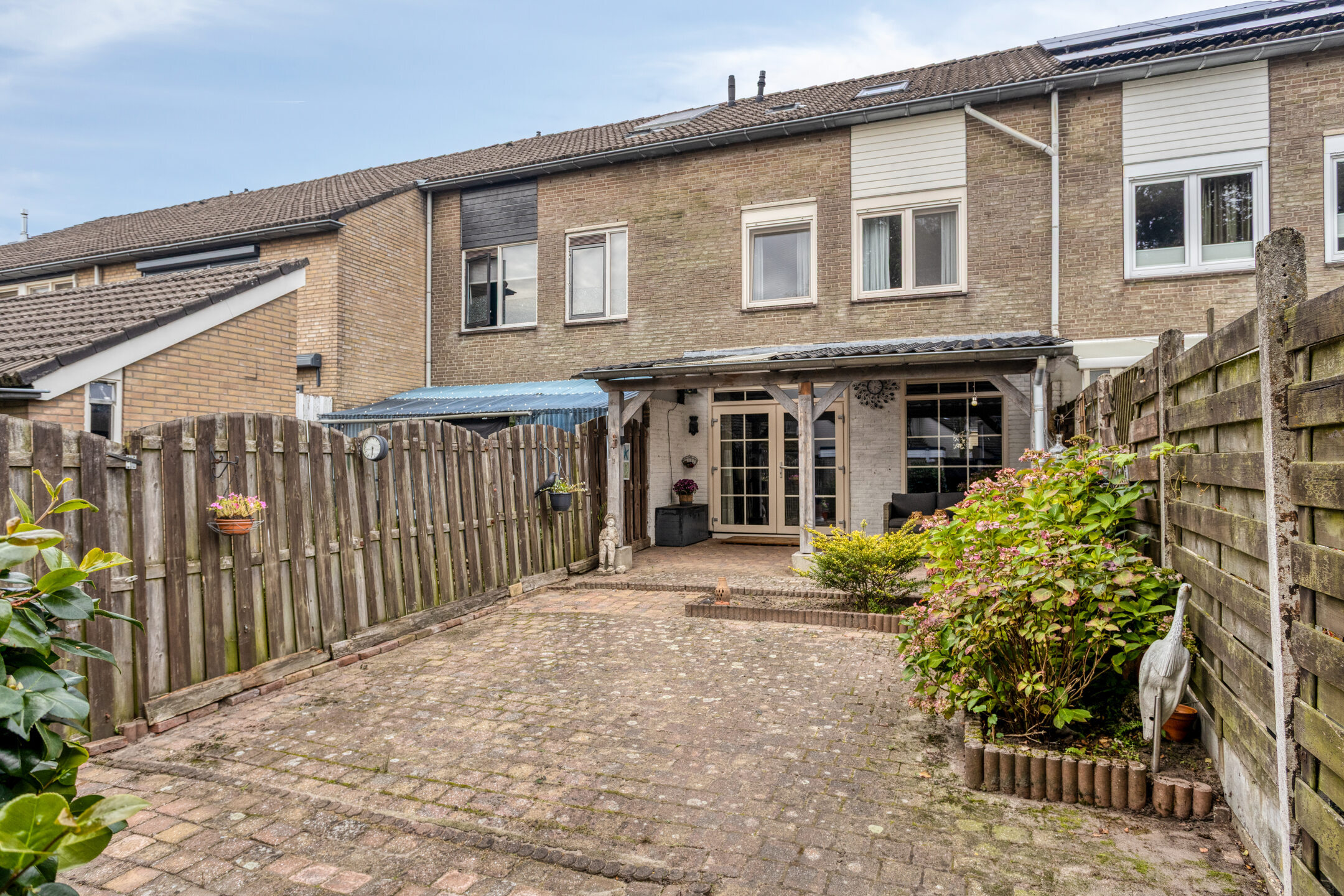 Bij binnenkomst kom je in de hal met toilet, meterkast en trapopgang. De royale woonkamer is heerlijk licht dankzij de grote ramen en openslaande deuren naar de tuin. De halfopen keuken sluit er mooi op aan en onder de overkapping geniet je van het buitenleven – zelfs tot ver in het najaar.