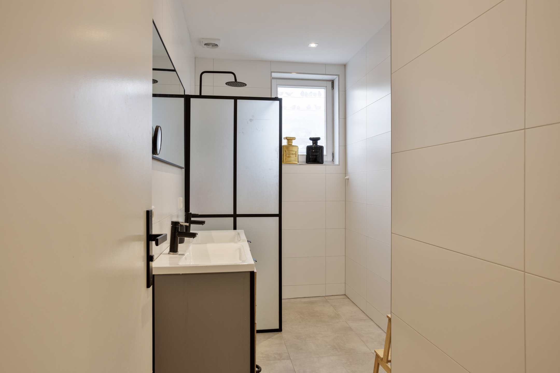 Wat deze woning extra aantrekkelijk maakt, is dat vrijwel alle belangrijke voorzieningen zich op de begane grond bevinden. Hier vind je een royale slaapkamer en een moderne badkamer, waardoor gelijkvloers wonen mogelijk is. Dat maakt de woning niet alleen comfortabel, maar ook toekomstbestendig. Vanuit de slaapkamer loop je via openslaande deuren zo de zonnige achtertuin in.