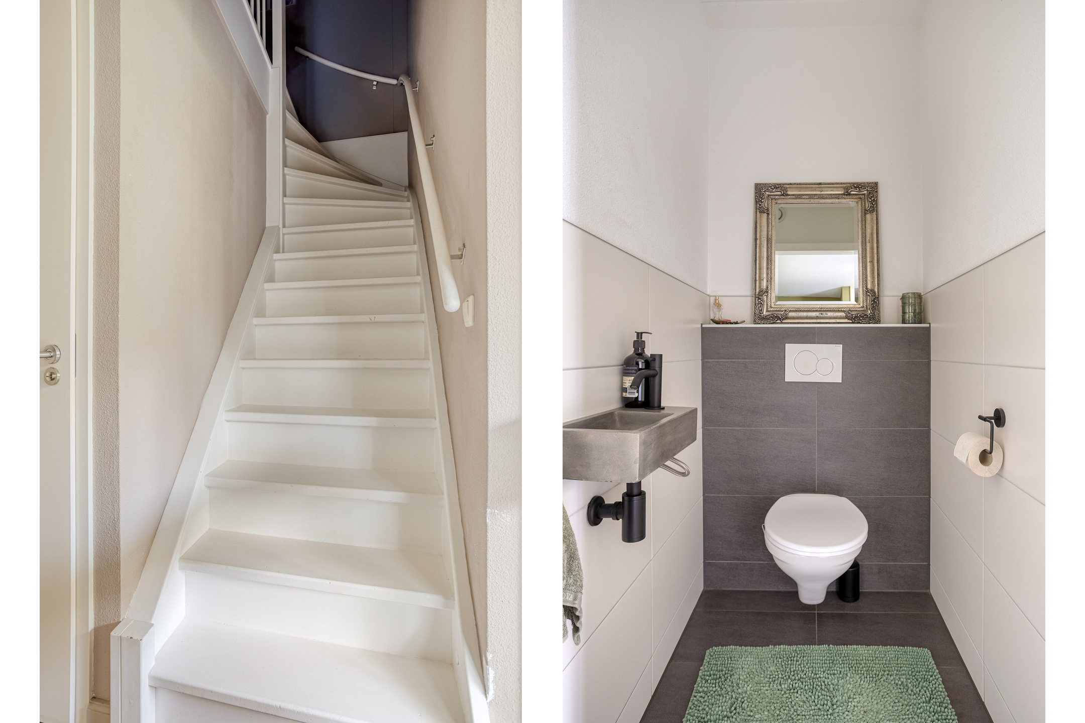 Bij binnenkomst in de hal valt direct de ruimte en hoogwaardige afwerking op – een mooie voorbode voor de rest van de woning. Hier bevinden zich de meterkast, garderobe, trapopgang en een moderne toiletruimte.