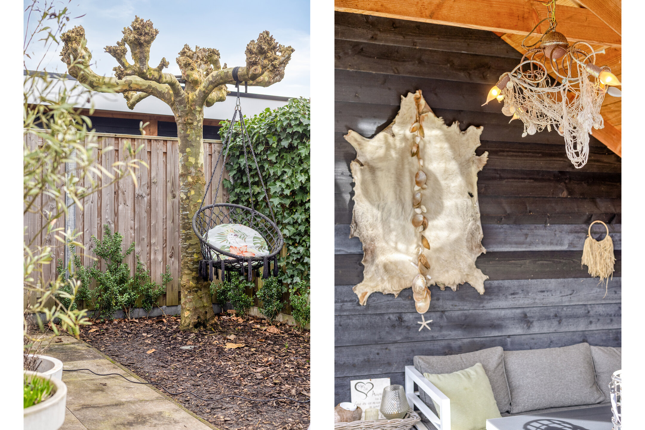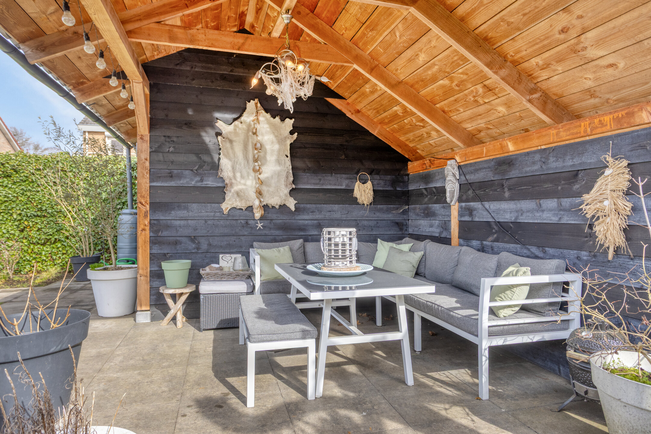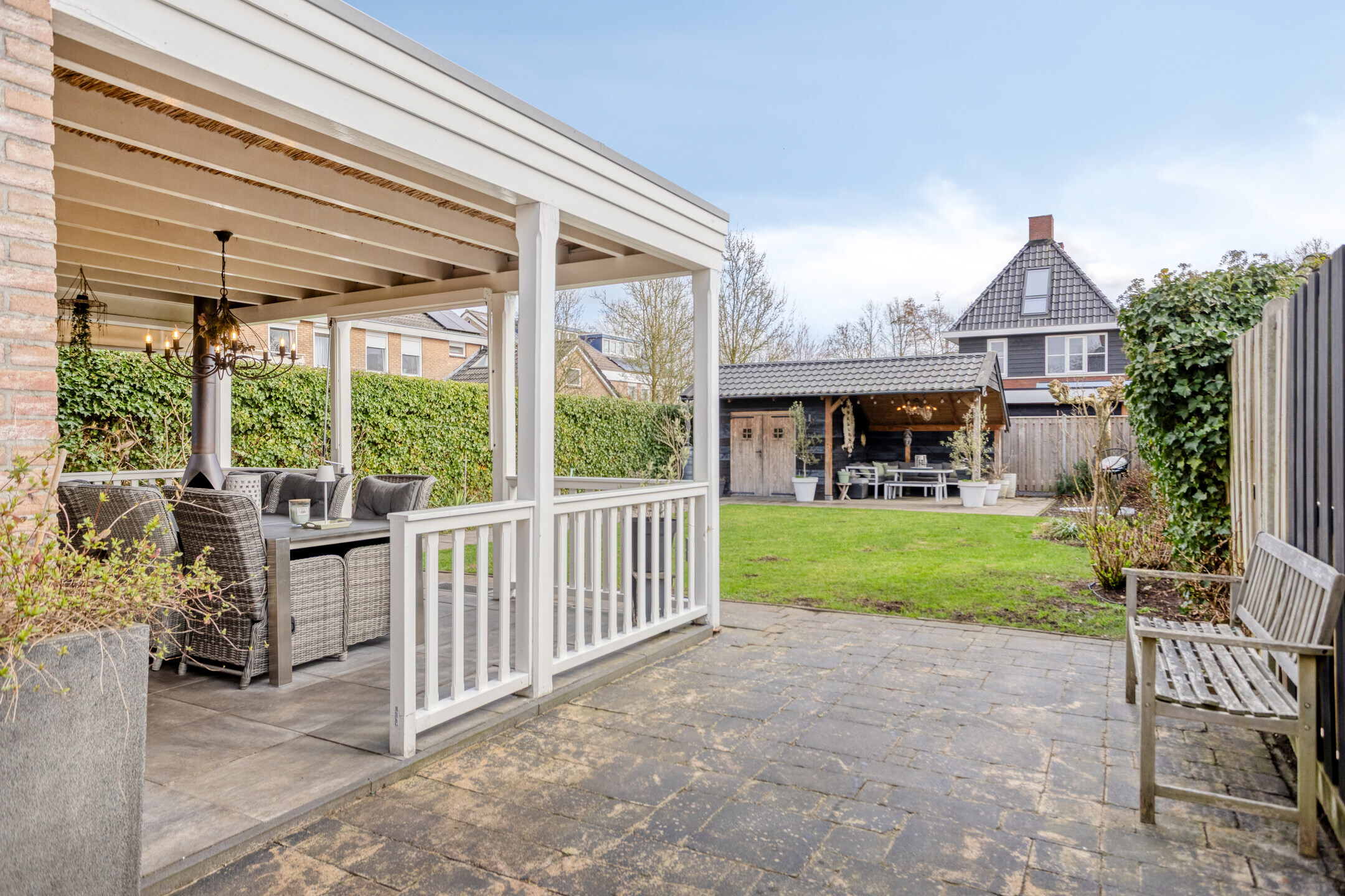 De fraai aangelegde achtertuin, gelegen op het zuidoosten, is een heerlijke plek om te ontspannen. Van het vroege voorjaar tot laat in het najaar geniet je hier volop van zon en privacy. De sfeervolle veranda met open haard maakt het buitenleven extra comfortabel. Achterin de tuin vind je bovendien een extra terras en een praktische berging.