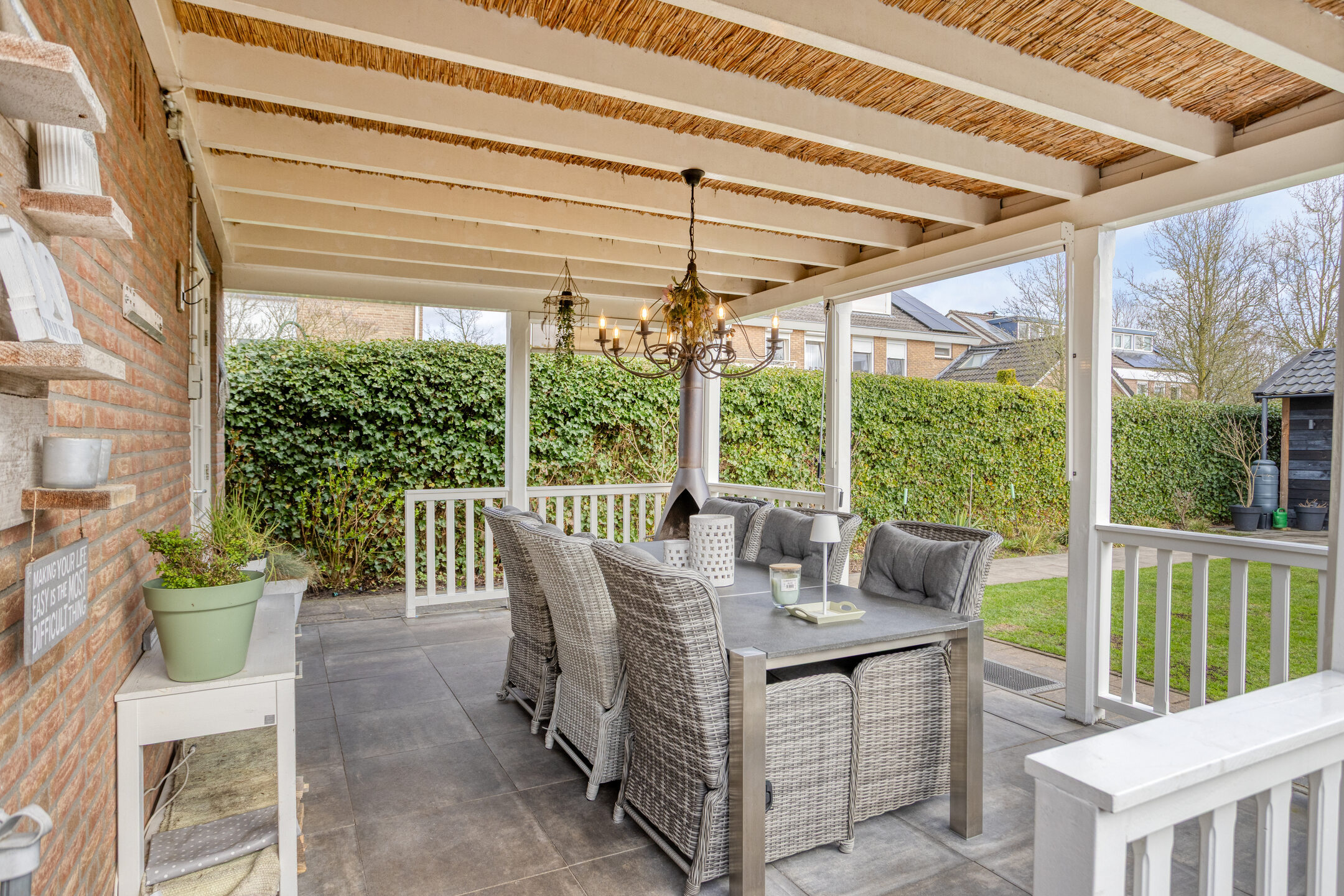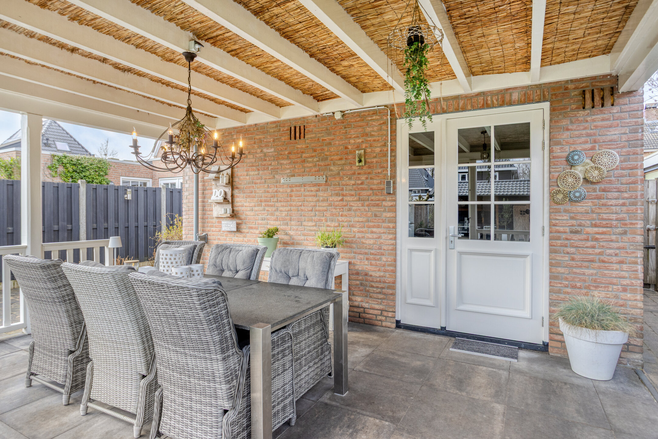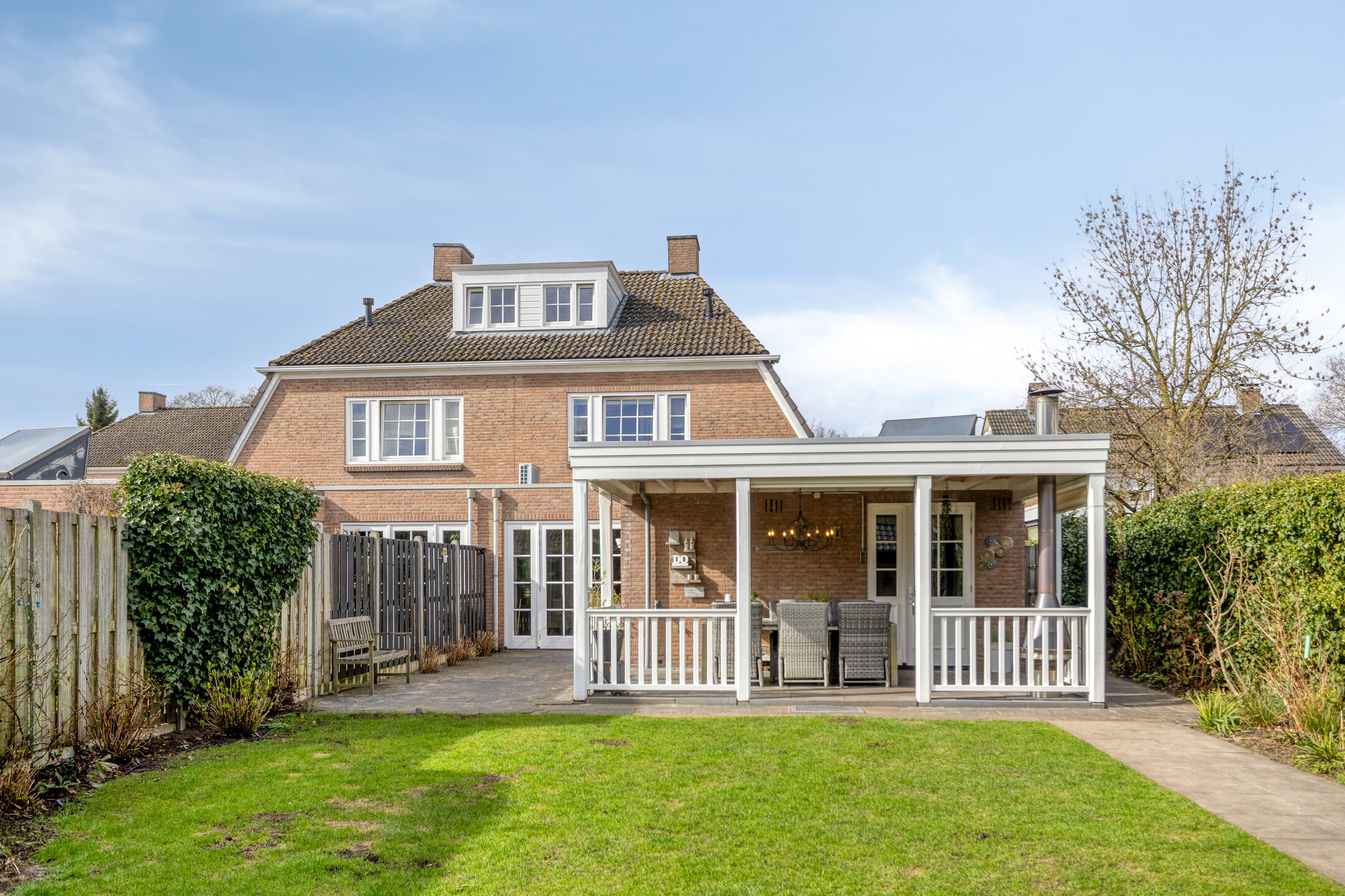 De fraai aangelegde achtertuin, gelegen op het zuidoosten, is een heerlijke plek om te ontspannen. Van het vroege voorjaar tot laat in het najaar geniet je hier volop van zon en privacy. De sfeervolle veranda met open haard maakt het buitenleven extra comfortabel. Achterin de tuin vind je bovendien een extra terras en een praktische berging.
