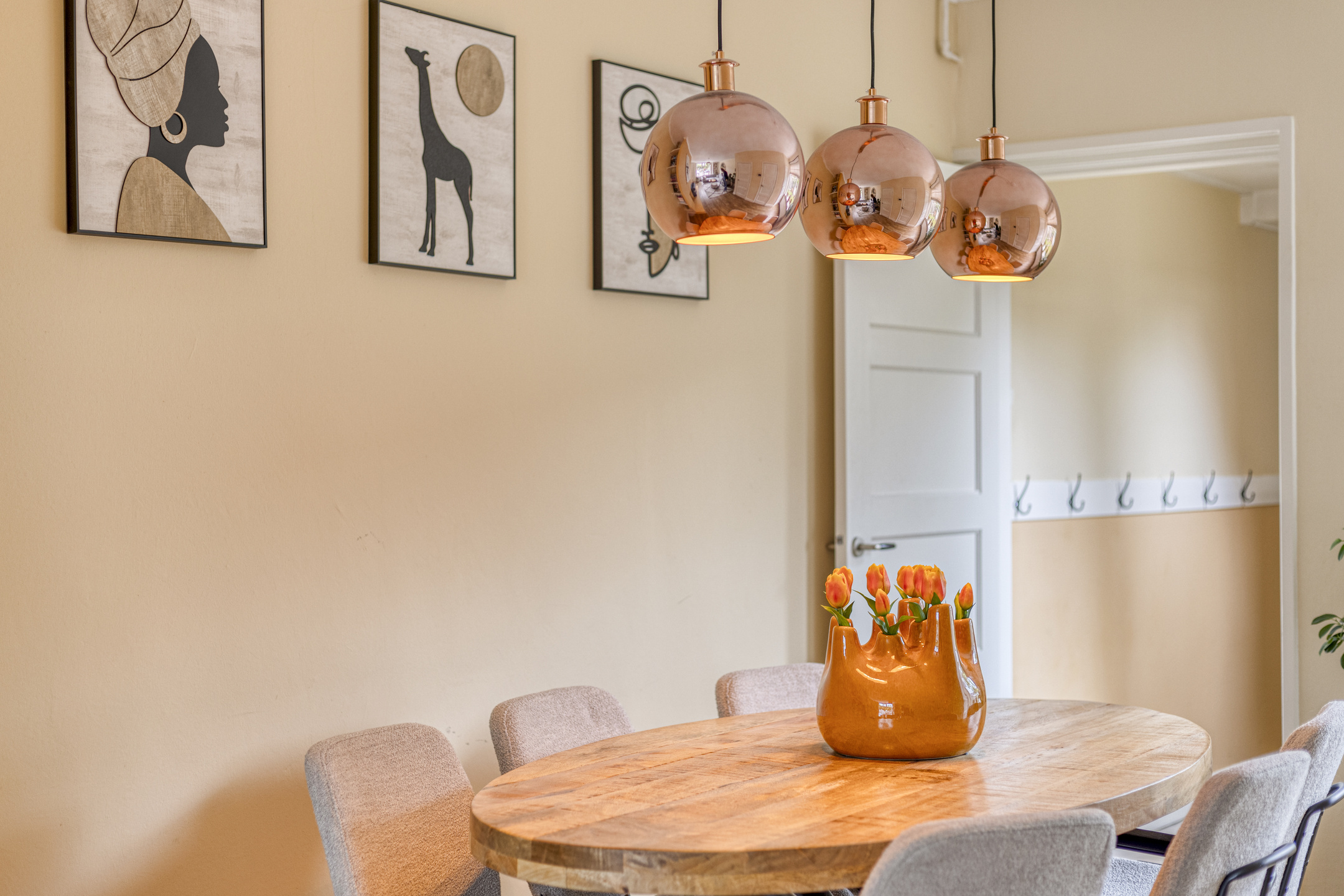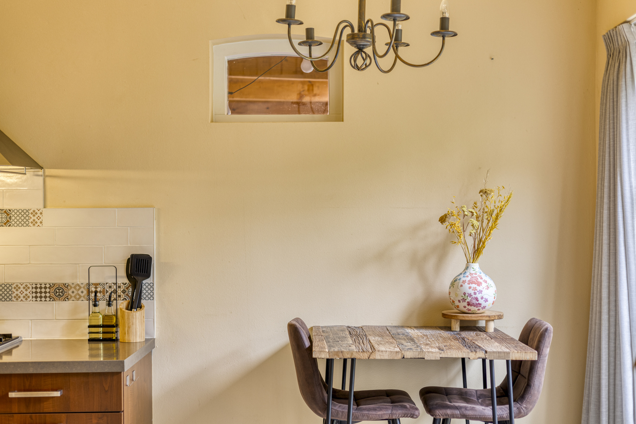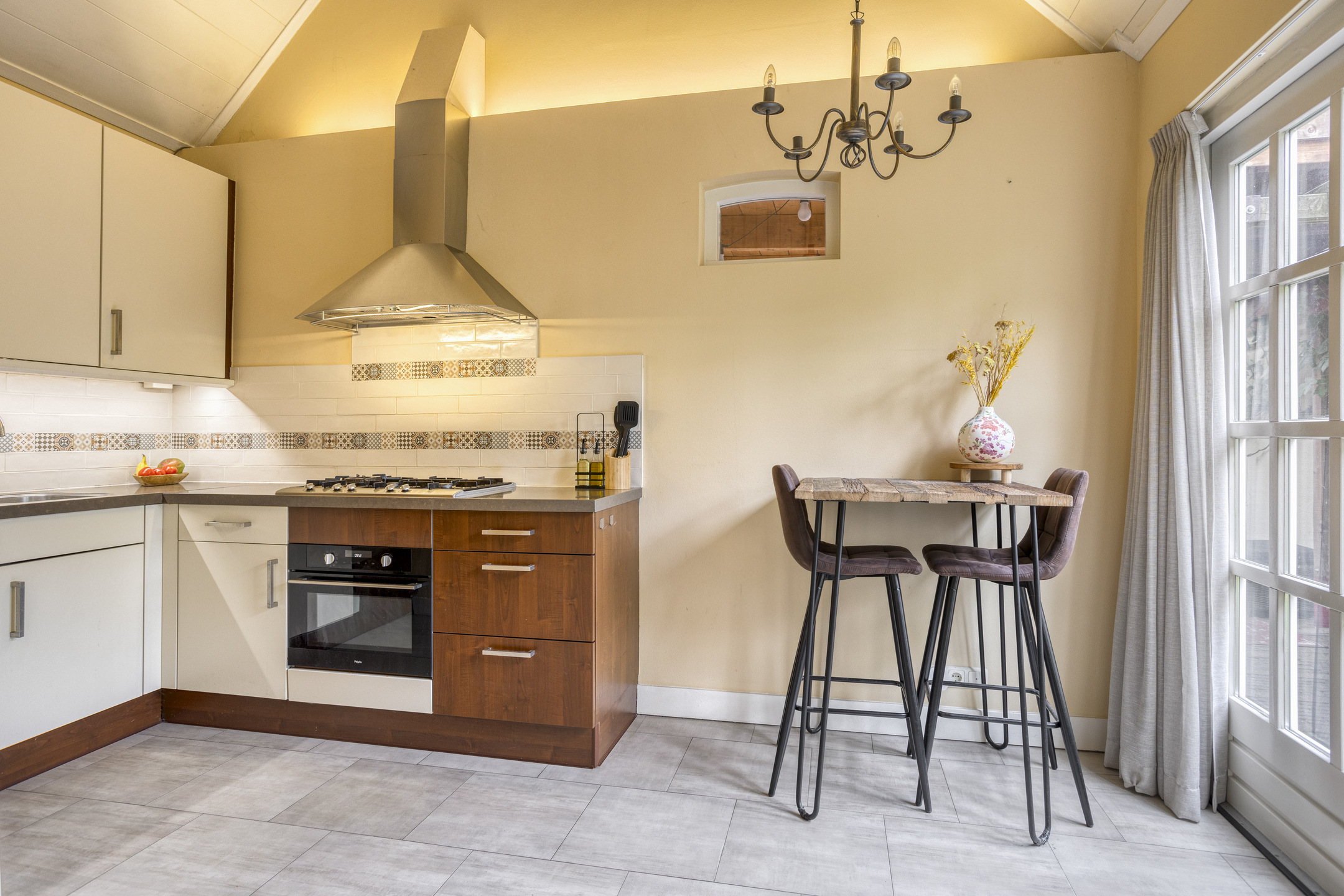 Binnen tref je een ruime, lichte woonkamer en een nette keuken in de aanbouw, compleet met een gezellige ontbijtplek. Via de openslaande terrasdeuren loop je zo de tuin in. De praktische bijkeuken zorgt voor extra opslag en gemak.