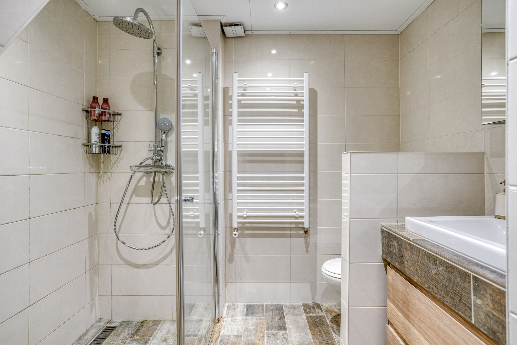 Op de eerste verdieping bevinden zich twee comfortabele slaapkamers en een badkamer met douche, toilet en wastafel in een neutrale kleurstelling. De zolderverdieping biedt een derde slaapkamer, een bergvliering en de mogelijkheid voor een vierde slaapkamer.